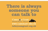Cameron's Card with helpline details for Samaritans, PAPYRUS Prevention of Young Suicide and Shout 85258. Available free of charge and in any reasonable quantity.