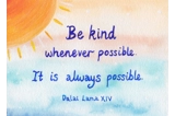 "Be Kind" Wellbeing Postcard with helpline details for Samaritans, PAPYRUS Prevention of Young Suicide and Shout 85258. Available free of charge and in any reasonable quantity.