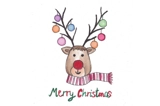 Christmas Card of a reindeer with Xmas baubles hanging from its antlers!